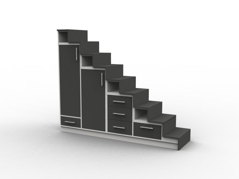 In einigen Zimmern befindet sich eine Treppe, die zu einem Zwischengeschoss führt. Der Raum unter dieser Treppe ist ein Bereich, den es richtig zu nutzen gilt, da Schlafzimmer schmale Räume sind, in denen jeder Platz seine Bedeutung hat. Häufig wird der Raum als Arbeits- oder Leseecke eingerichtet, aber durch diese Art der Einrichtung geht viel Platz verloren. Die Maßanfertigung ermöglicht es, einen Bereich unter der Treppe einzurichten und dabei die verfügbare Fläche maximal zu optimieren.